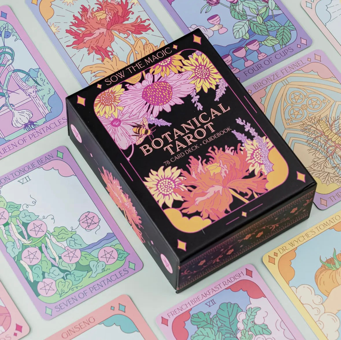 Cada carta está adornada con vibrantes ilustraciones de flores, hierbas y plantas sagradas, tejiendo juntas un tapiz de simbolismo y significado. Desde la antigua tradición herbolaria hasta el lenguaje místico de las flores, esta baraja de tarot combina la sabiduría intemporal de la naturaleza con la práctica intuitiva de la lectura de cartas.