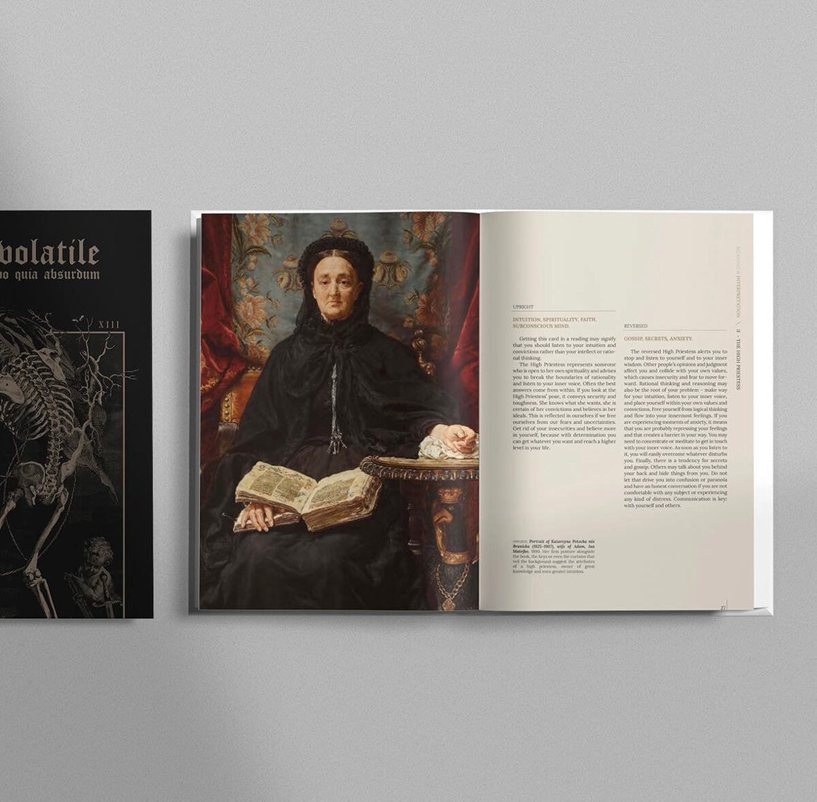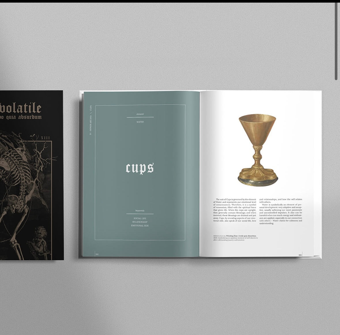 Este libro de tapa dura tiene más de 504 páginas en papel mate, con exploraciones detalladas de cada tarjeta, su simbolismo e interpretaciones. Junto con más de 100 imágenes, que van desde pinturas inspiradoras hasta obras de arte originales, cada ilustración está cuidadosamente vinculada a la iconografía de la tarjeta.