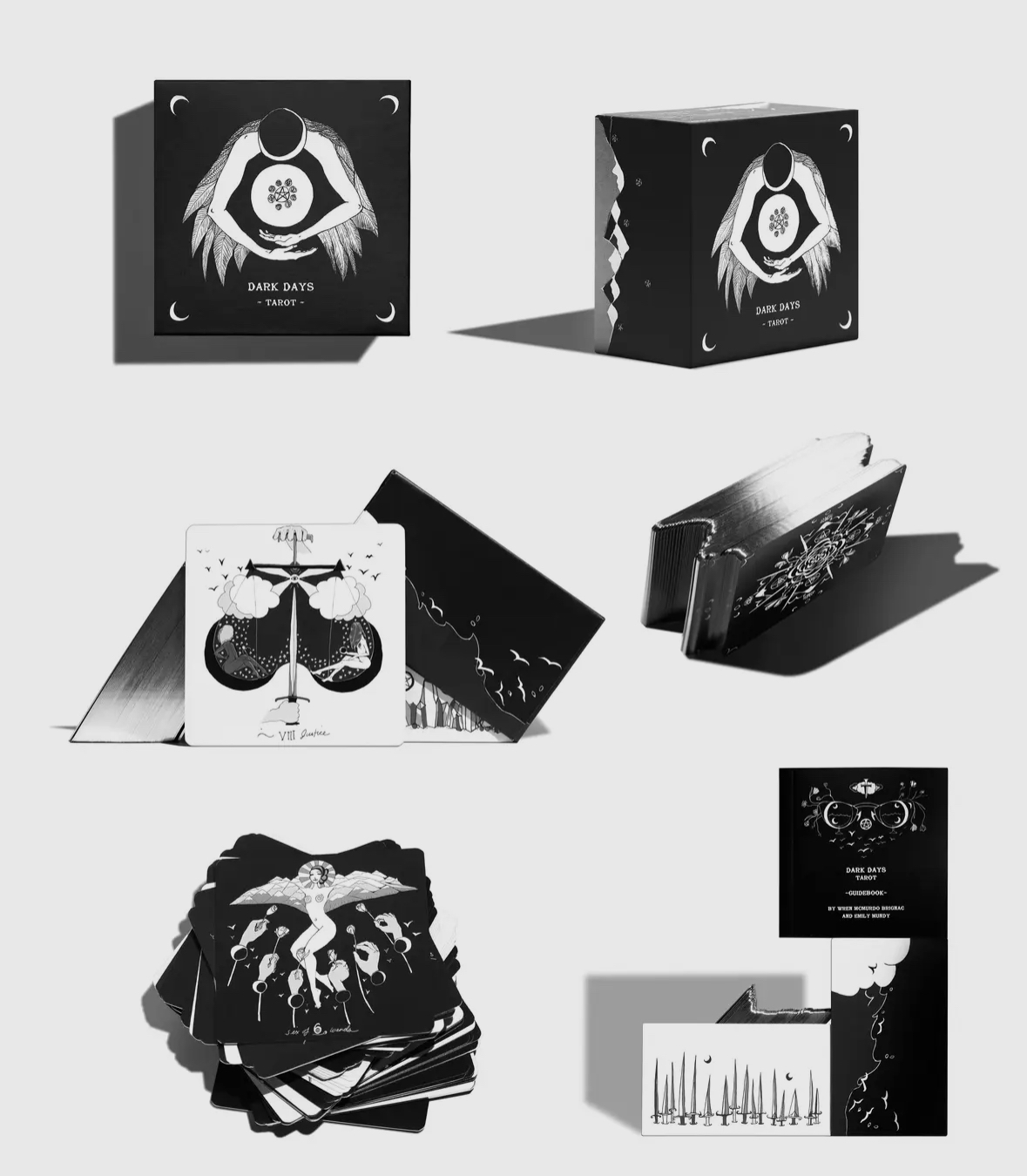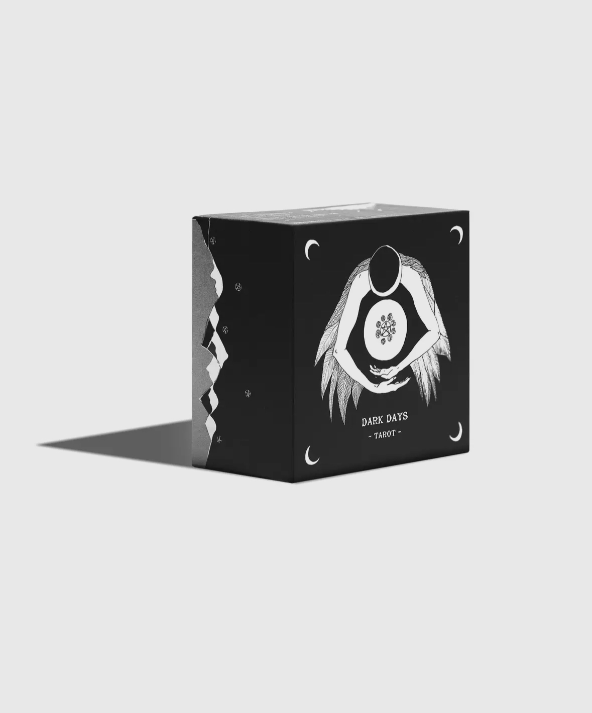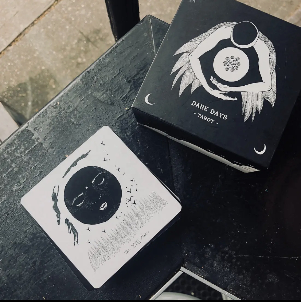 La baraja Dark Days Tarot está inspirada en los días oscuros del ciclo lunar, cuando nos sentimos atraídos energéticamente hacia la reflexión.
