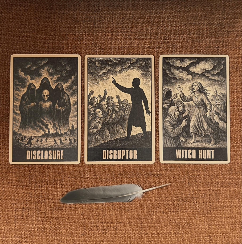 Finalmente, estas imágenes solo existen en esta baraja. No son 'obras de arte' para galerías, sino parte de un experimento específico de adivinación durante nuestra era tecnológica. Los artistas a lo largo de la historia han trabajado con herramientas nuevas y a veces controvertidas, la IA es simplemente la última. Esta baraja no ha reemplazado a nadie; más bien, utiliza el sistema contra sí misma, infiltrándose en las barreras digitales y los guardianes que buscan bloquearnos. Esta es la nueva forma de hechicería digital.