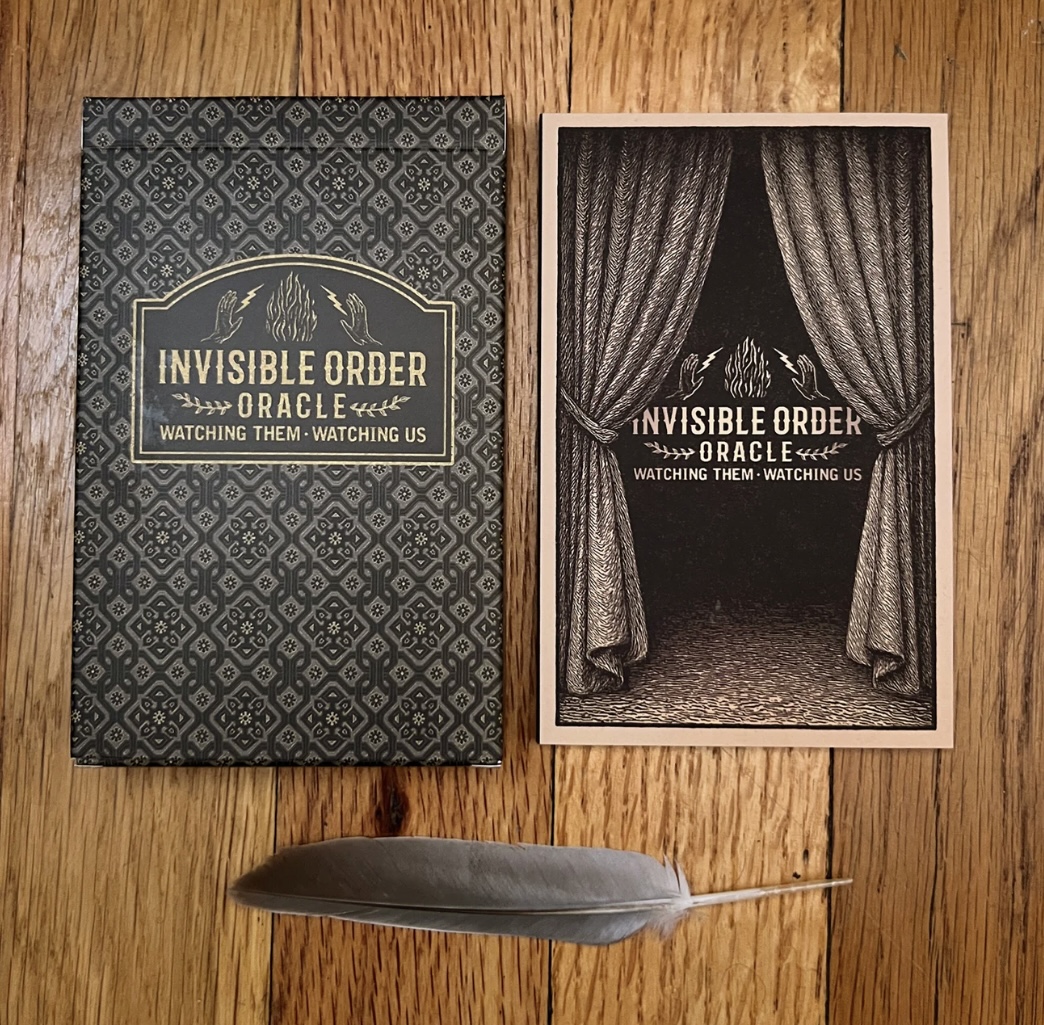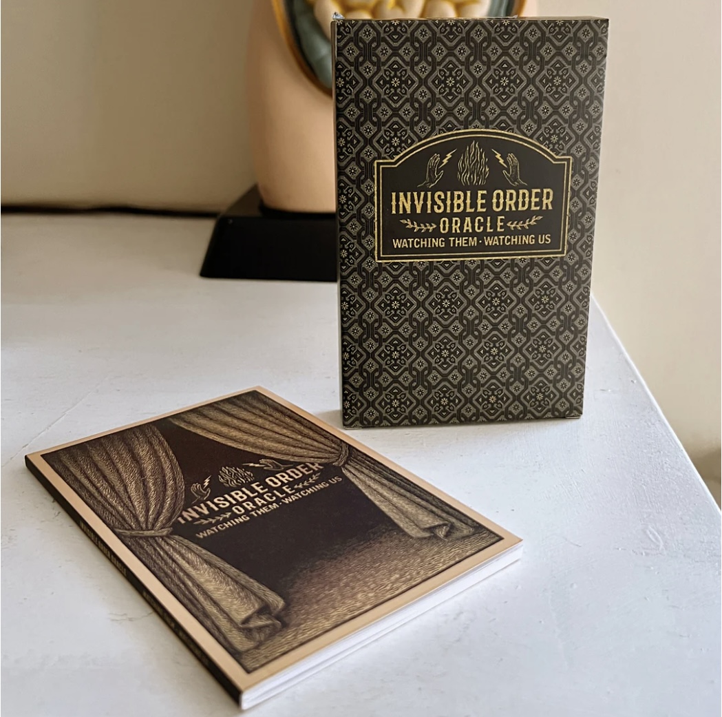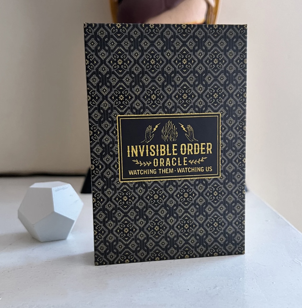 El Oráculo de la Orden Invisible viene de un lugar muy diferente al de mis otras barajas. Explora temas que la sociedad a menudo empuja hacia las sombras, los tabúes y se mueve hacia un terreno más oscuro, tocando temas de control, vigilancia y las fuerzas ocultas que nos influyen. Te invita a ver estas fuerzas con claridad y a reclamar tu propia conciencia.