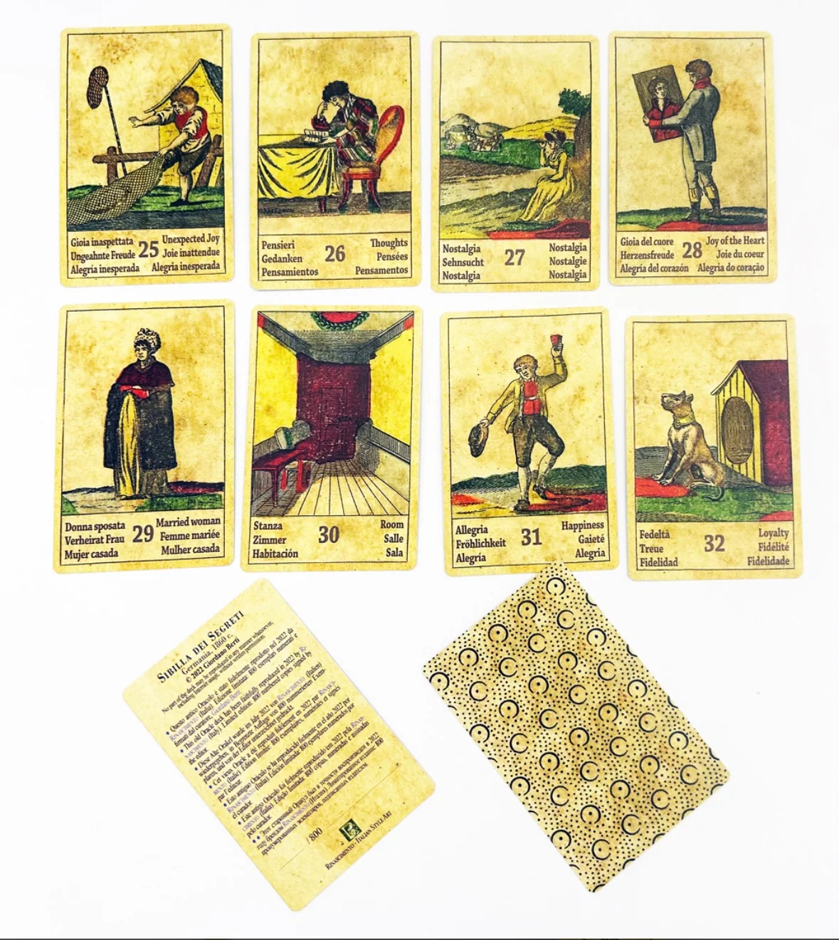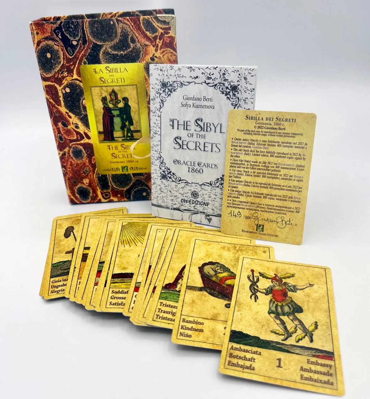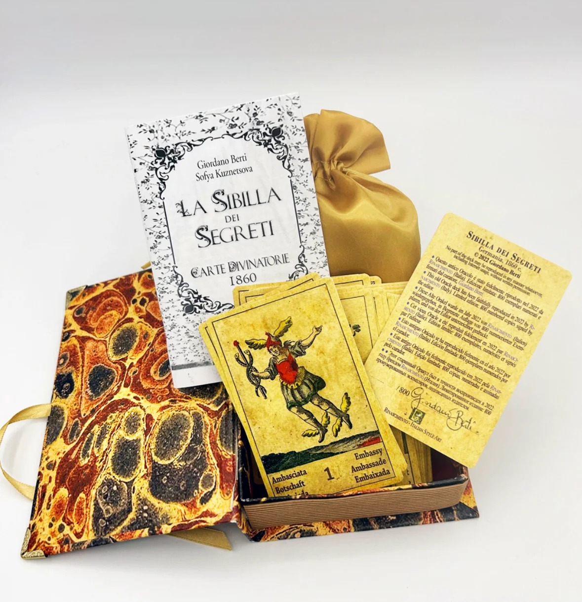 La Sibila de los Secretos es una de las primeras versiones de los 'Libros del Destino'. Estas cartas adivinatorias gozaron de enorme popularidad gracias a su simplicidad, que las hace fácilmente utilizables por cualquier persona. Contiene 32 cartas con descripciones en 6 idiomas y un folleto de 60 páginas que explica los significados simbólicos y adivinatorios de las cartas, así como su uso.
