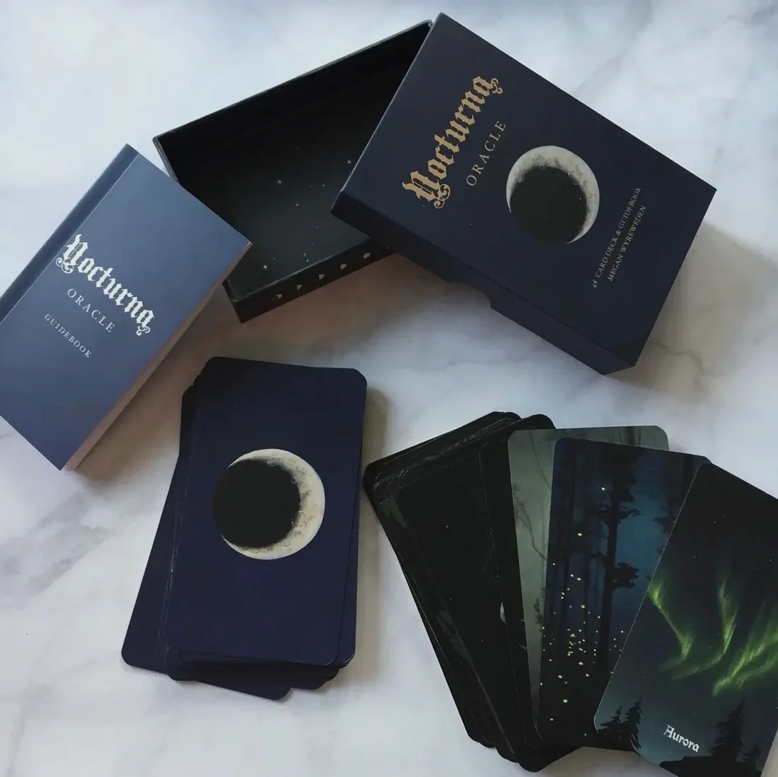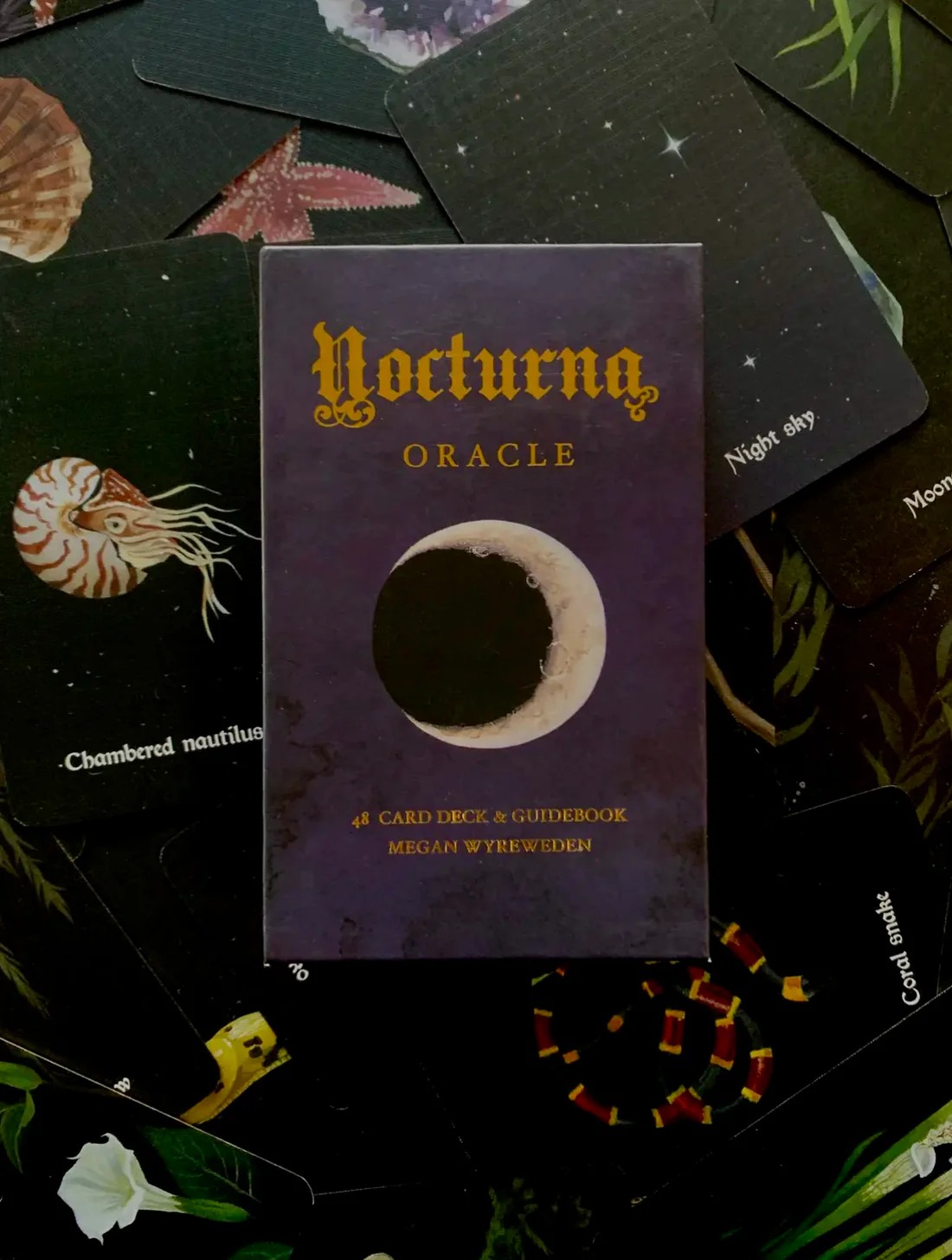 Un mazo de oráculo de 48 cartas inspirado en las criaturas nocturnas y la noche.