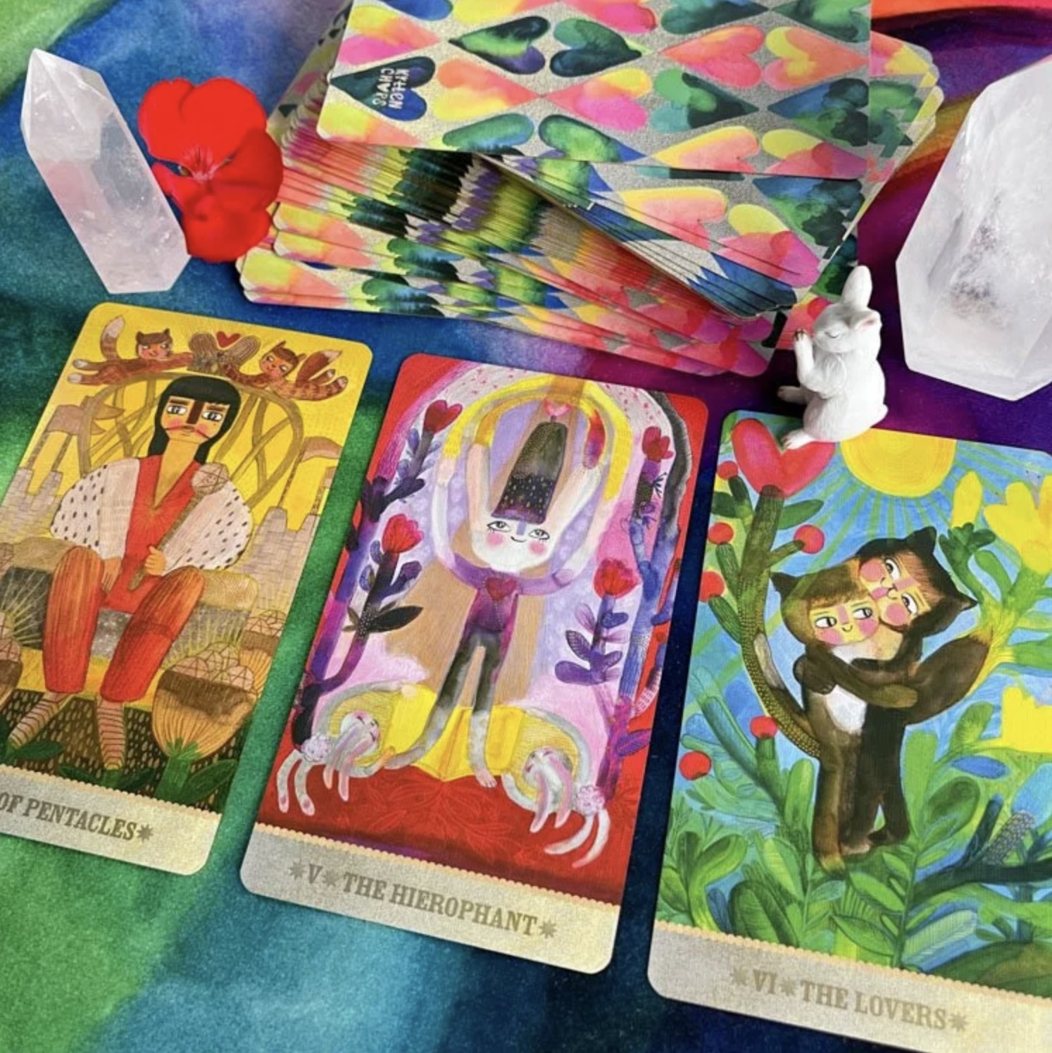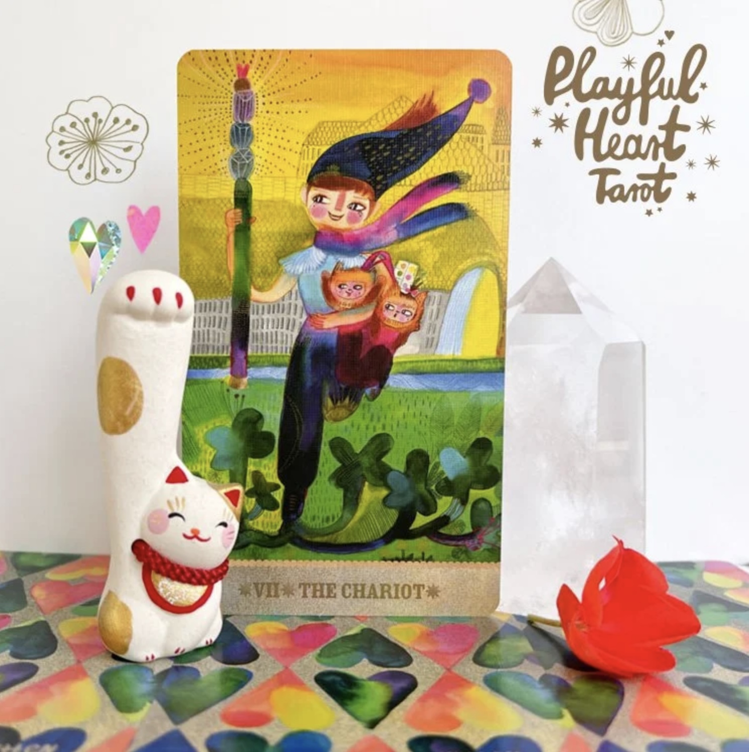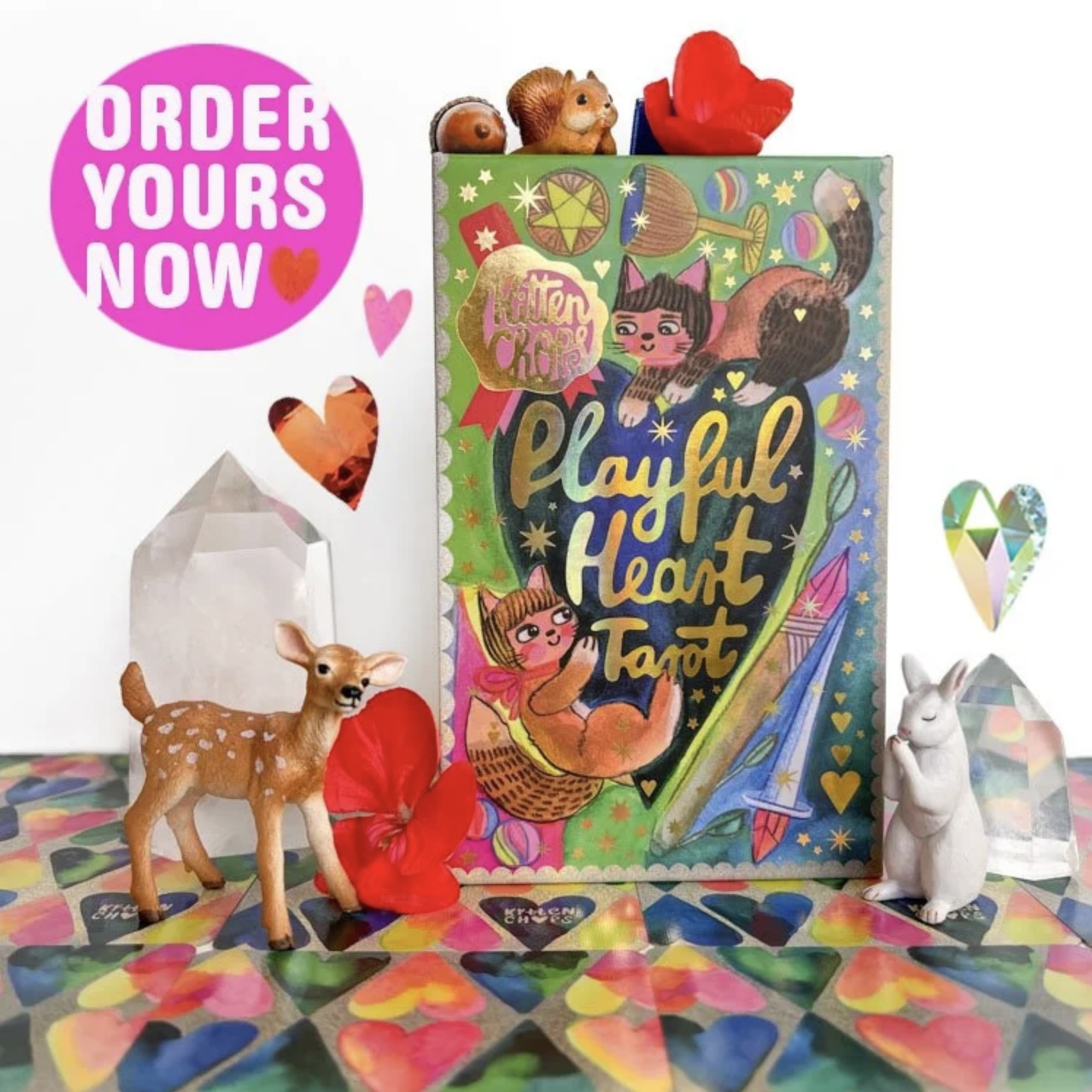 Playful Heart Tarot es un mazo inspirado en RWS creado por la artista Zaara para su marca Kittenchops. Sus mazos aportan una dulzura extra a la sinceridad que ofrecen sus lecturas y son tan lindos que es un gustazo perderte en ellos.