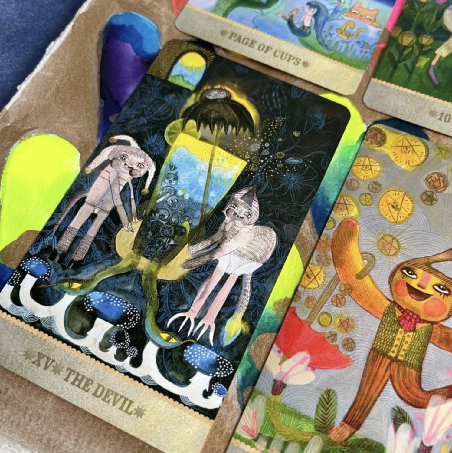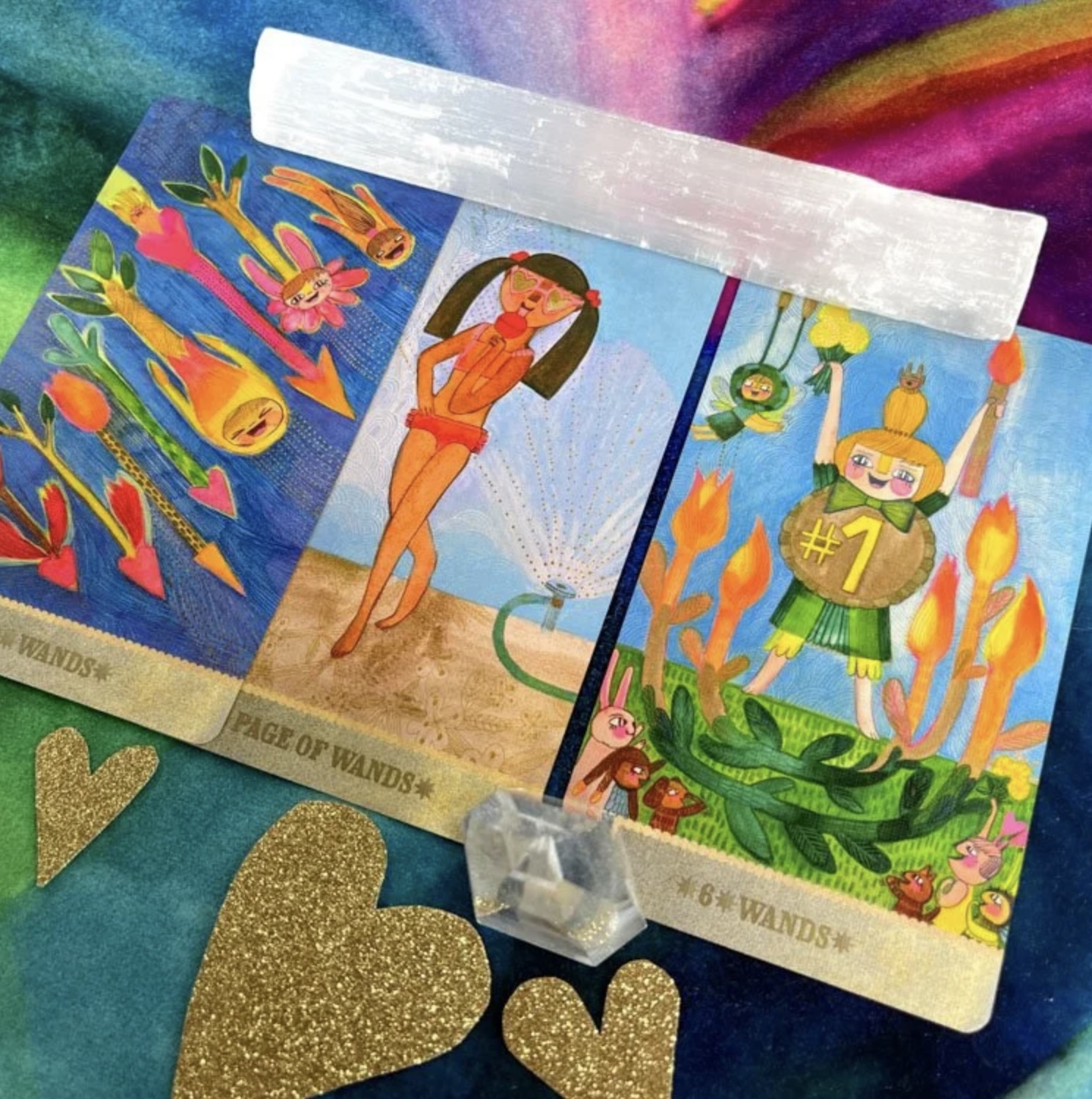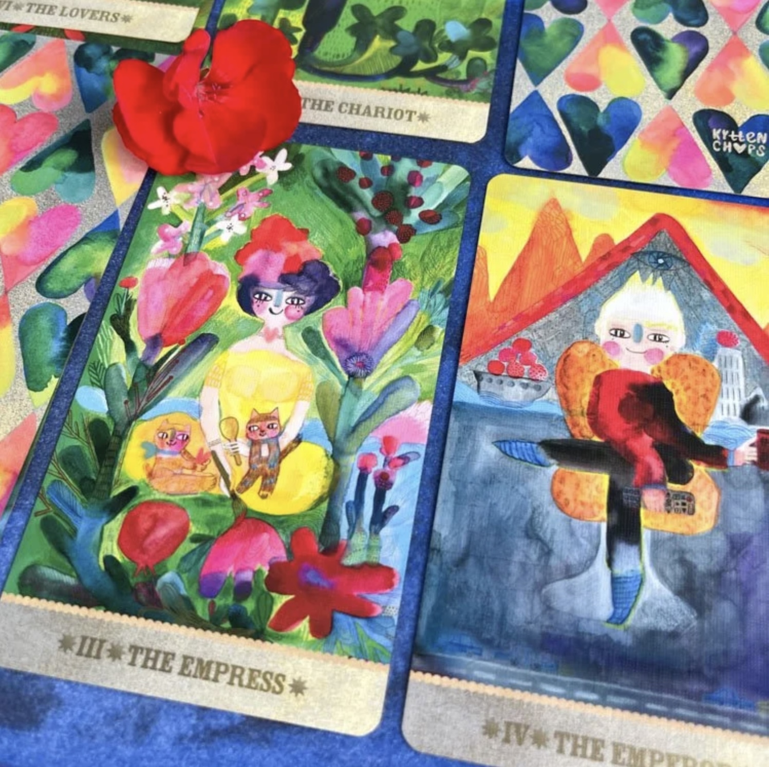 Playful Heart Tarot es un mazo inspirado en RWS creado por la artista Zaara para su marca Kittenchops. Sus mazos aportan una dulzura extra a la sinceridad que ofrecen sus lecturas y son tan lindos que es un gustazo perderte en ellos.