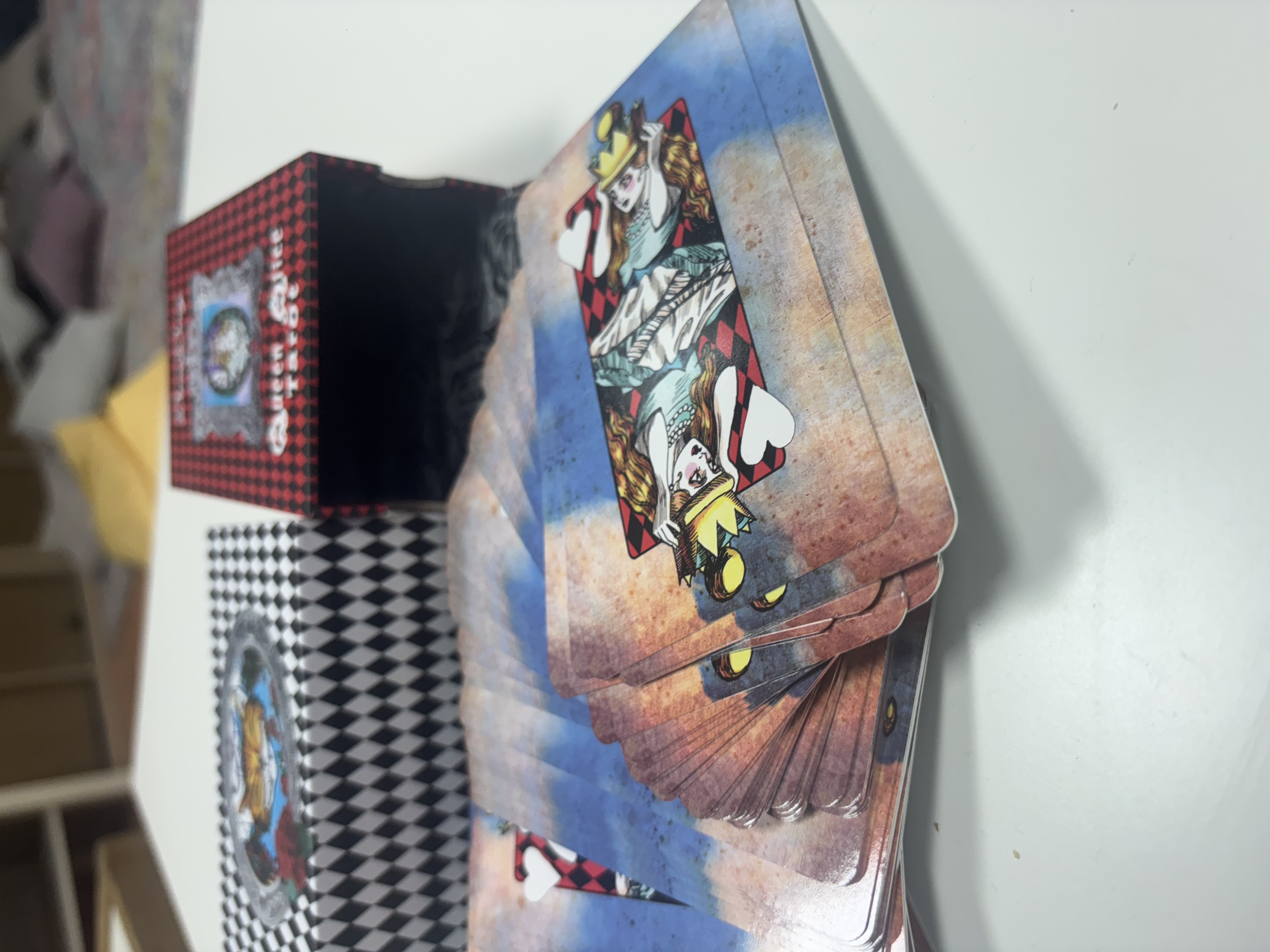 La versión 2 de Queen Alice cuenta con la misma cartulina de 350 g/m que las originales Queen Alice, Mermaid Tarot y Witchy Cat.