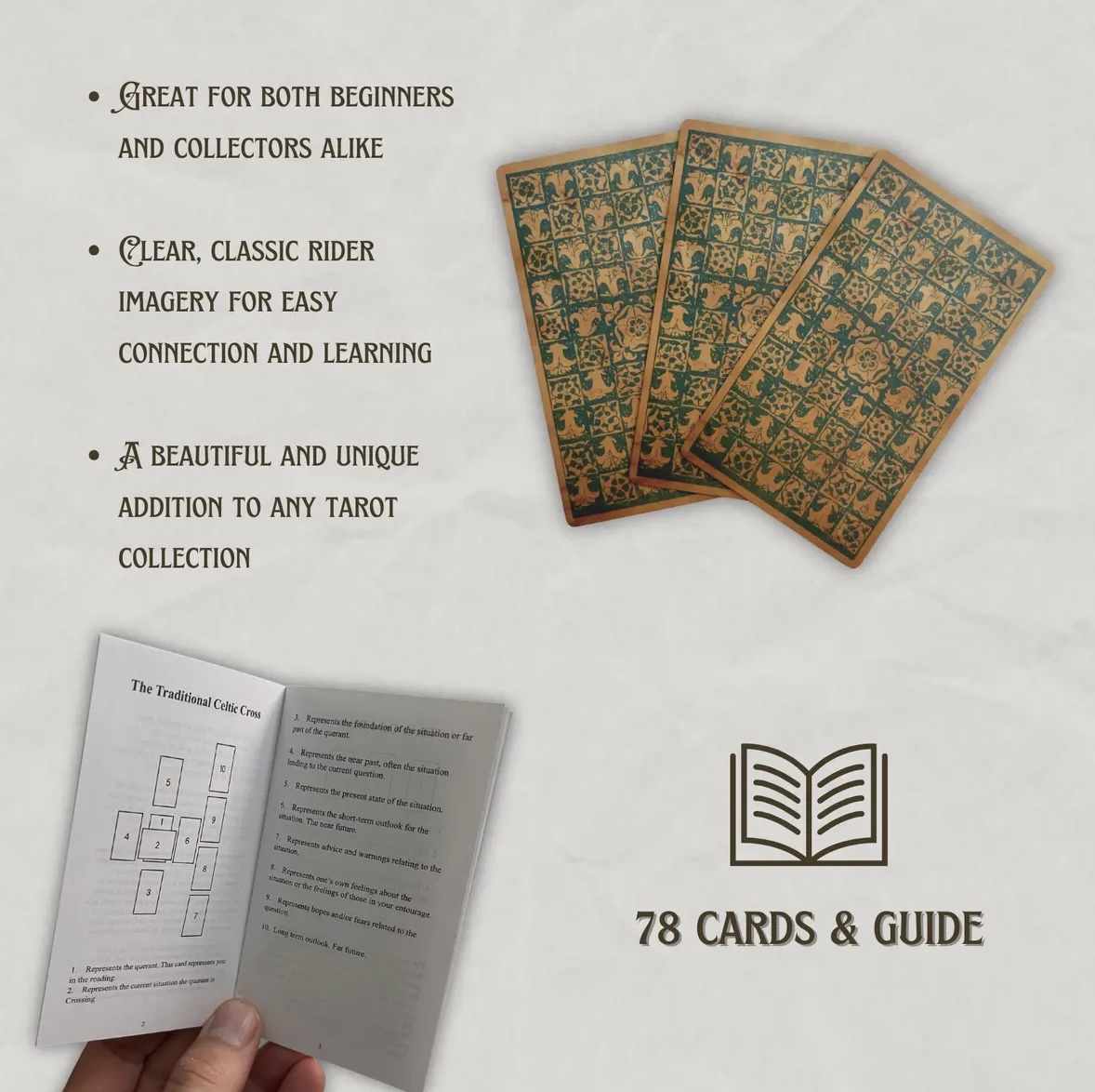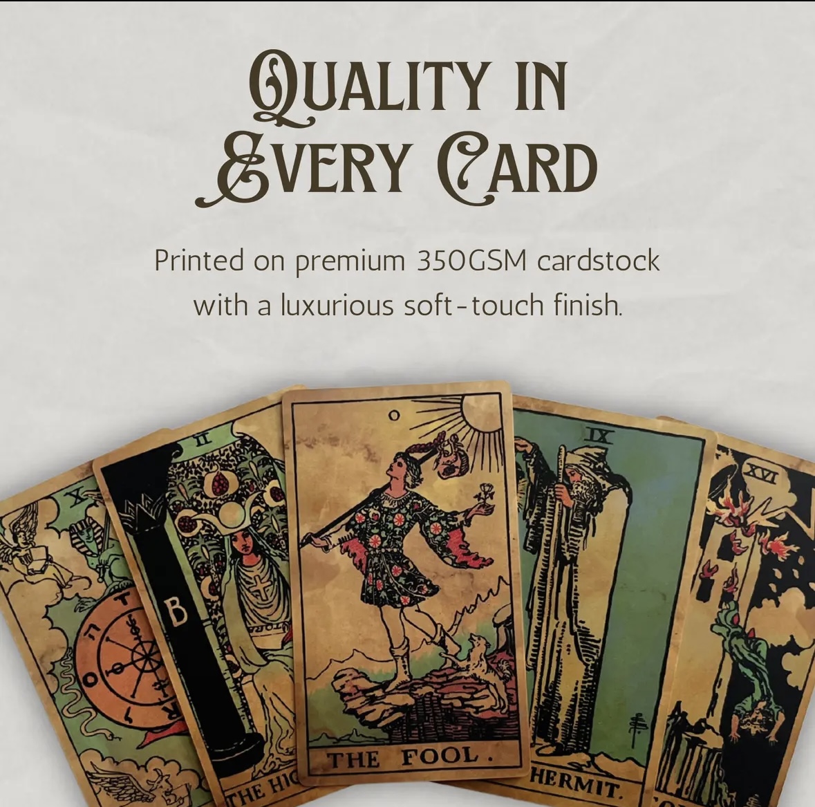 Antique Edition Tarot, una refinada reinvención de la clásica baraja Rider-Waite, cuidadosamente recoloreada en una cálida paleta antigua. Perfecta para lectores de todos los niveles, esta baraja equilibra el encanto histórico con tonos suaves y envejecidos para una experiencia verdaderamente nostálgica pero utilizable.