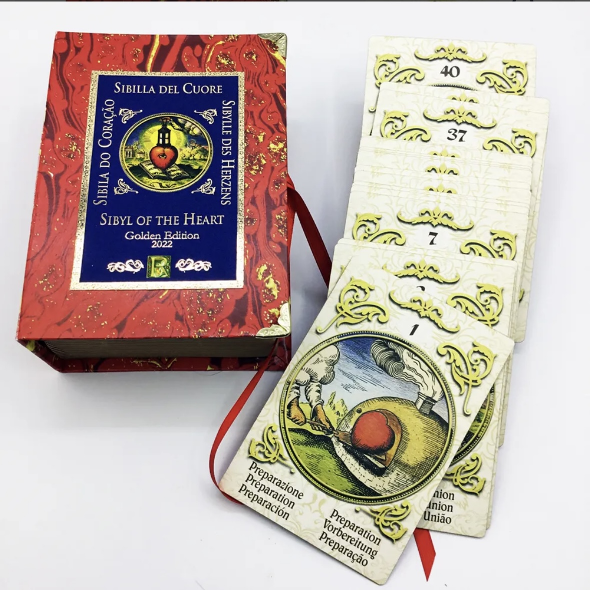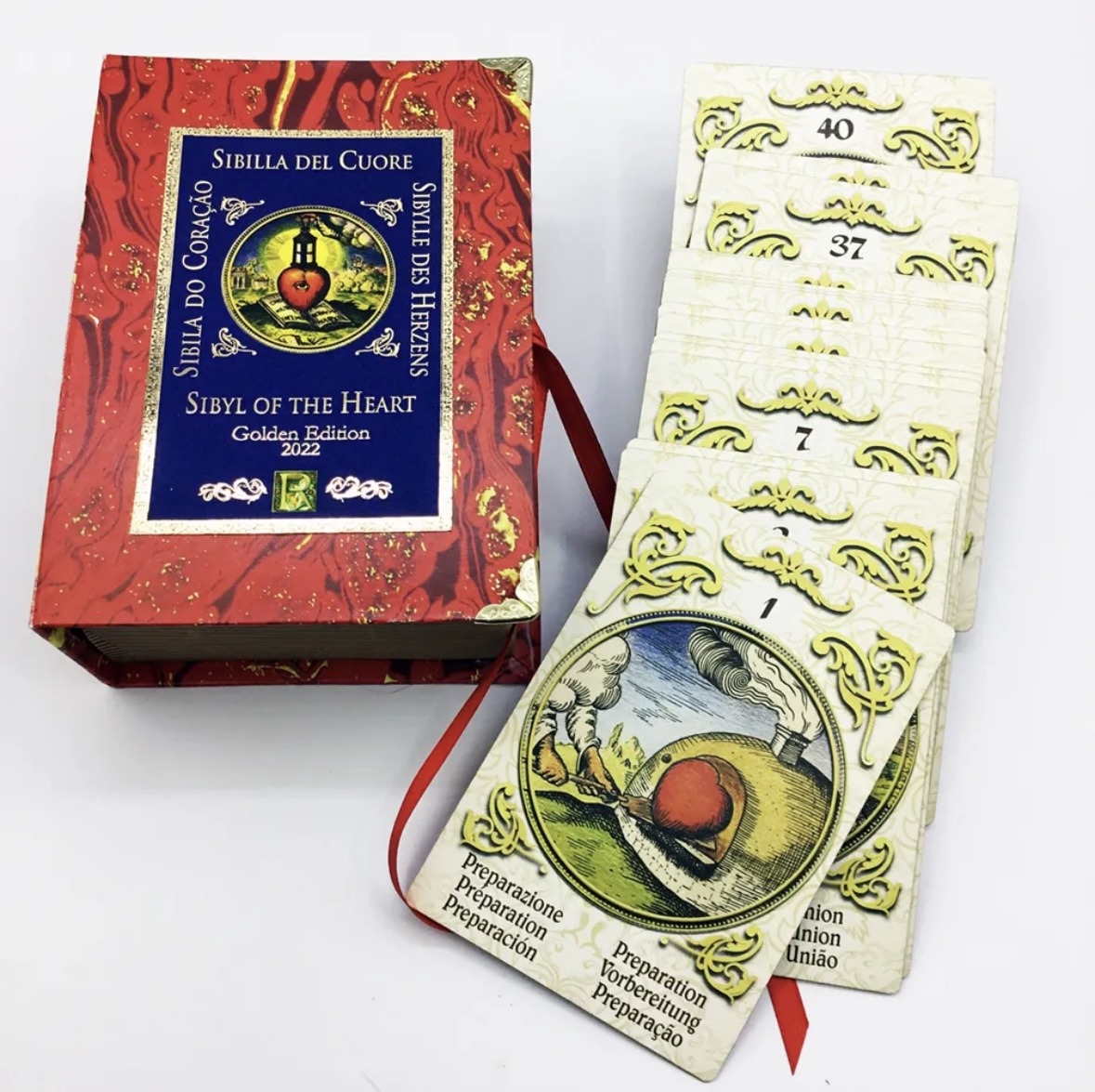 La Sibila del Corazón es una maravillosa herramienta útil para investigar sobre uno mismo y los sentimientos de otras personas. Las ilustraciones de este espléndido mazo provienen de la obra de un Maestro Rosacruz impresa en 1617. El hilo conductor es el corazón, considerado como la sede de las emociones humanas y símbolo de estados de ánimo que involucran a todas las personas a lo largo de su existencia. Después de 400 años, esa obra ha vuelto a la luz en esta capacidad gracias al curador, Giordano Berti, experto en tradiciones esotéricas occidentales, flanqueado por la Maestra Odete Lopes, experta en Carte Lenormand. Cada tarjeta (120 x 80 mm) contiene PALABRAS CLAVE EN SEIS IDIOMAS: italiano, inglés, francés, alemán, español, portugués.