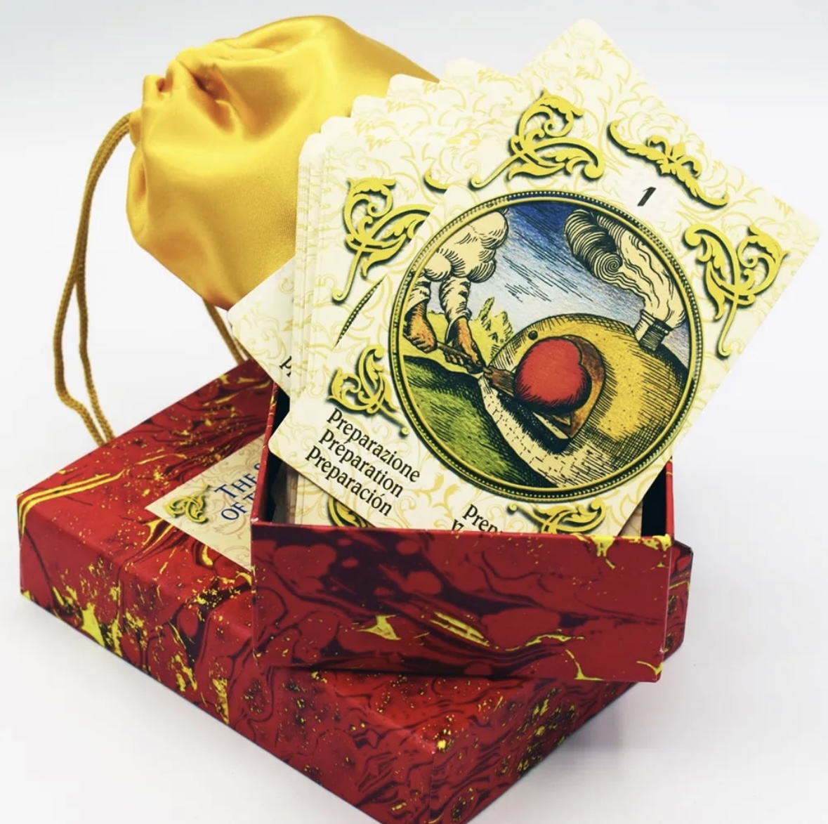 FOLLETO: 64 páginas, escrito por Giordano Berti y Odete Lopes, con información histórica, significados adivinatorios de cada carta y métodos de lectura, disponible en: italiano, inglés, portugués y alemán.