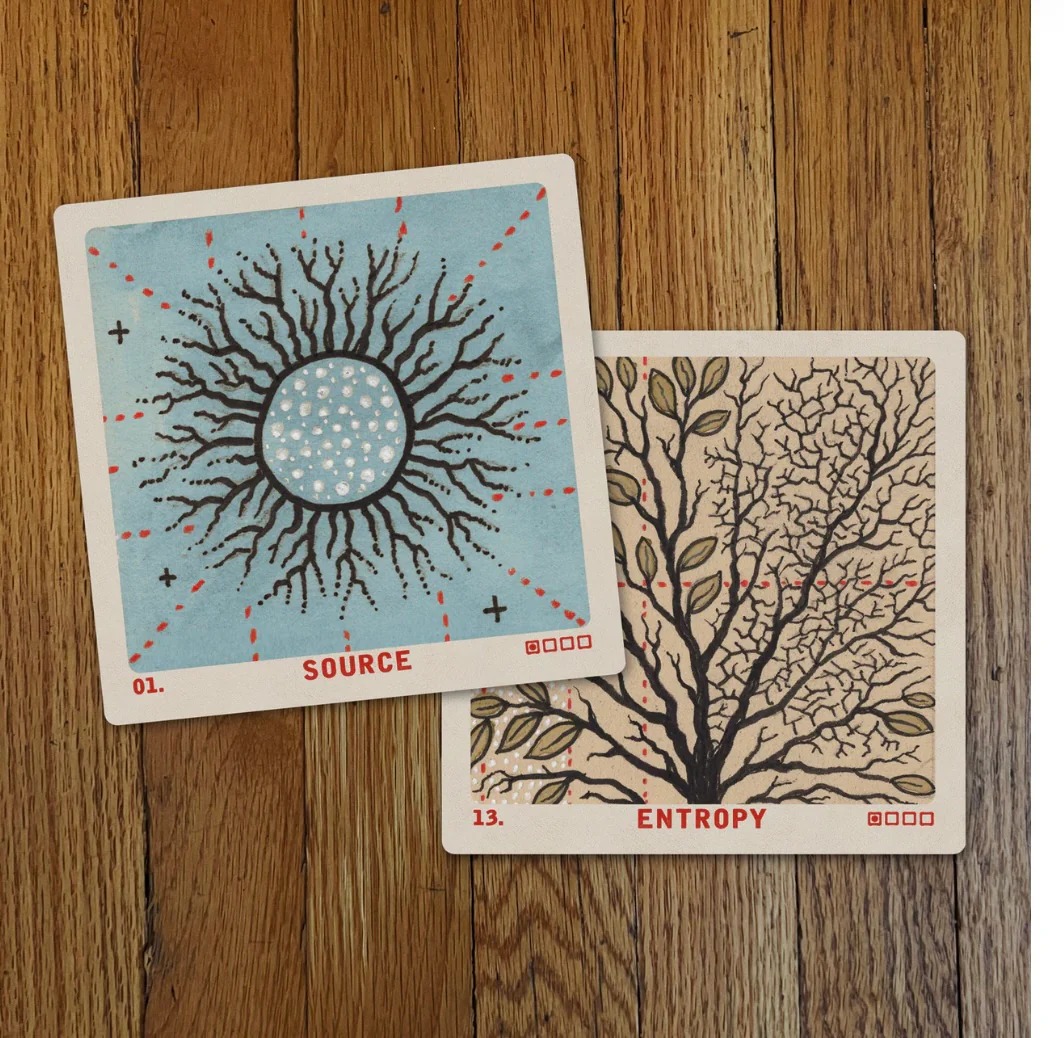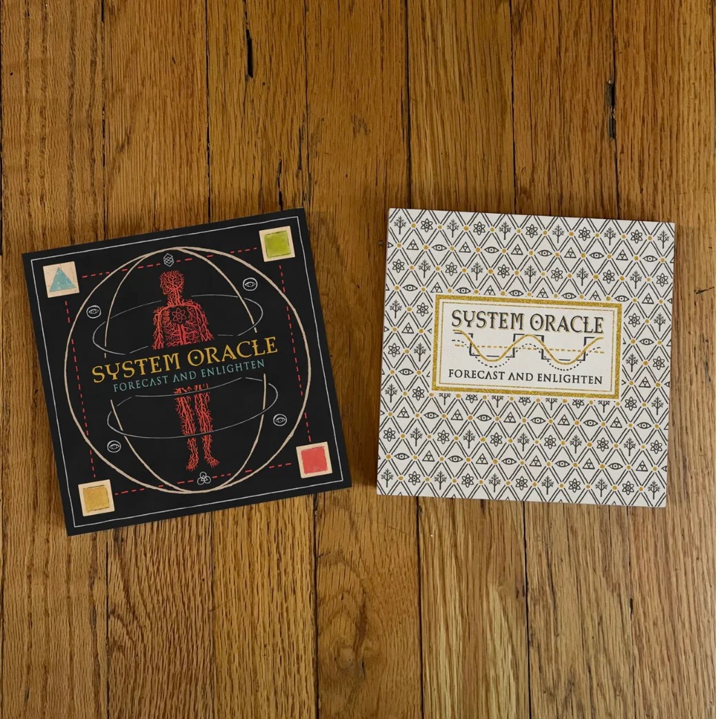 ACERCA DE El Oráculo del Sistema es una baraja de 62 cartas del visionario artista Daniel Martín Díaz. La singular perspectiva artística de Díaz abarca sistemas biológicos y digitales, lo que convierte a esta baraja en una profunda herramienta de adivinación que combina ciencia, filosofía e imágenes simbólicas. Cada carta presenta ilustraciones dibujadas a mano que representan conceptos complejos, diseñados para profundizar en la comprensión personal y predecir futuros potenciales. Es una puerta de entrada artística para explorar nuestros roles cósmicos y los sistemas ocultos que configuran nuestras vidas. La obra de arte del Oráculo del Sistema, con sus colores naturales y texturas orgánicas integradas con diseños tecnológicos, no solo es visualmente cautivadora, sino también un catalizador de la curiosidad, incitando a explorar más profundamente los misterios de la vida. El Oráculo del Sistema es una herramienta valiosa para quienes se encuentran en una encrucijada vital o buscan claridad. Proporciona previsión estratégica, empoderando a los usuarios para tomar decisiones informadas con confianza.