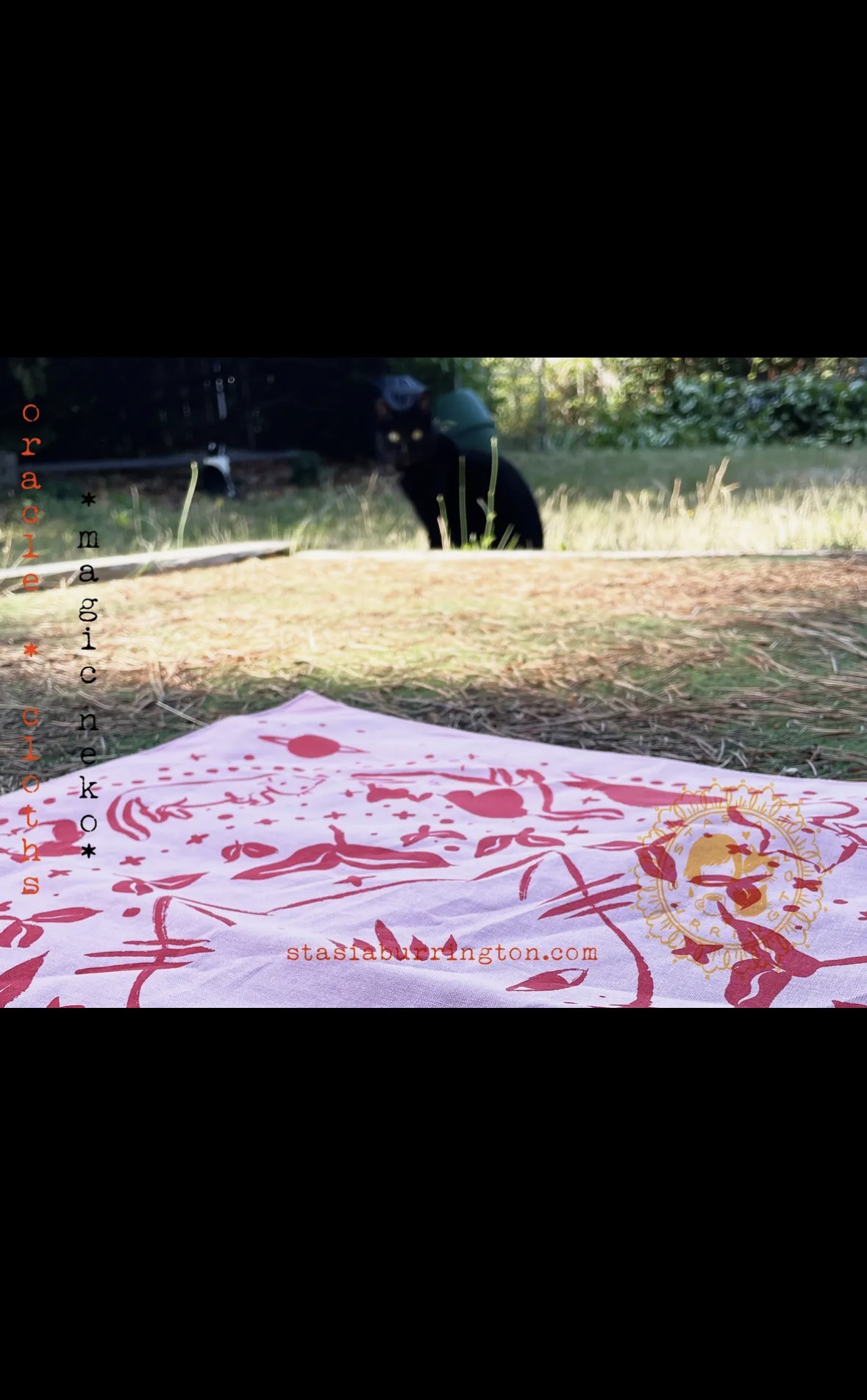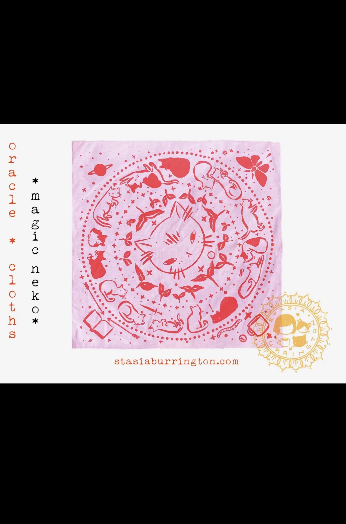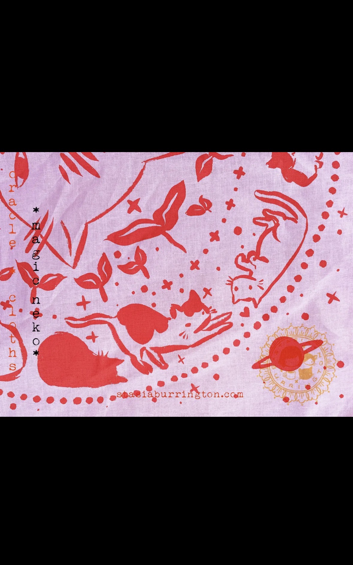 El pañuelo Magic Neko funciona como bandana, mantilla, tela para tiradas oraculares o de tarot.