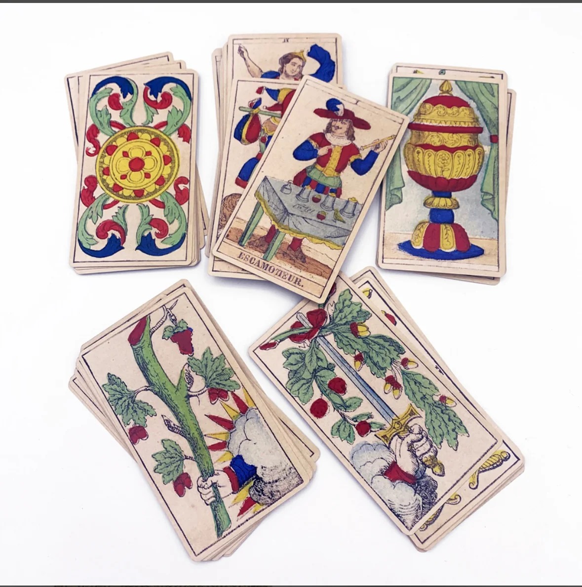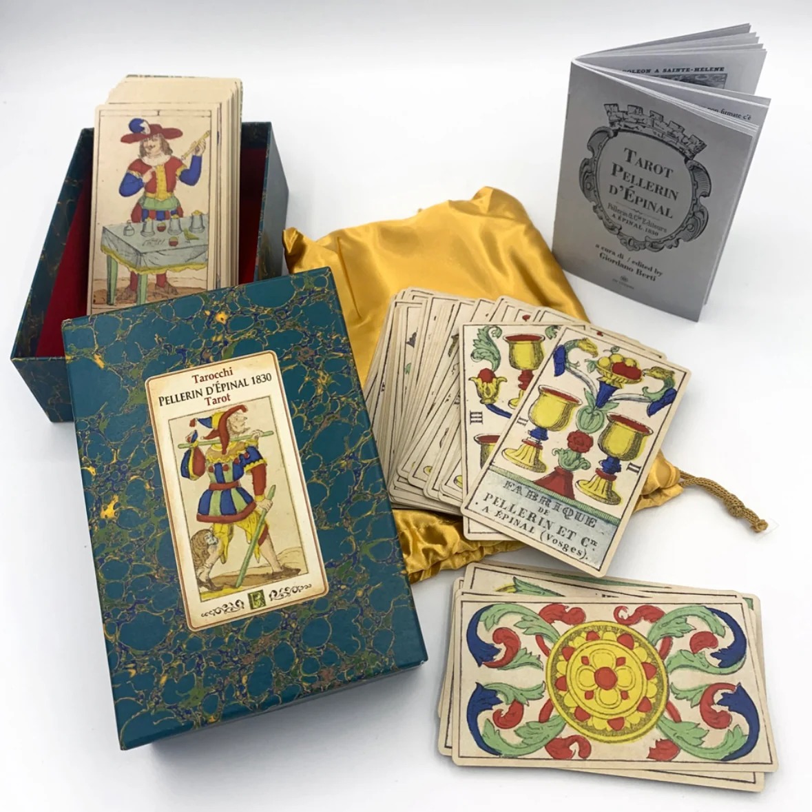 Una pequeña joya producida en Francia alrededor de 1830 vuelve a la luz hoy en una espléndida edición; la única absolutamente fiel al original. La CAJA DE ARTE contiene 78 TARJETAS, un FOLLETO BILINGÜE (italiano e inglés) con información histórica editado por Giordano Berti y un PLEGABLE con concisas instrucciones de cartomancia.