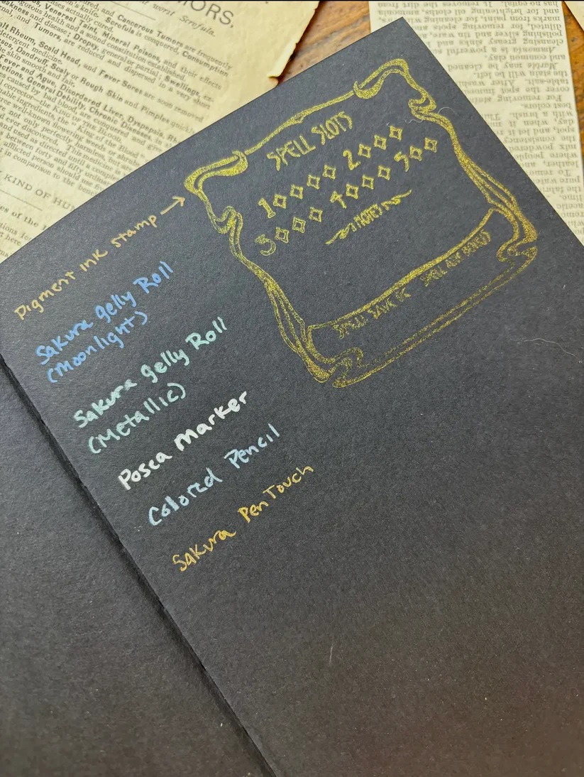 El papel se recomienda para bolígrafos como bolígrafos de gel, bolígrafos de inmersión, rotuladores acrílicos, así como lápices de colores. Los materiales húmedos, como el gouache, pueden provocar que la página se deforme y no se recomiendan.